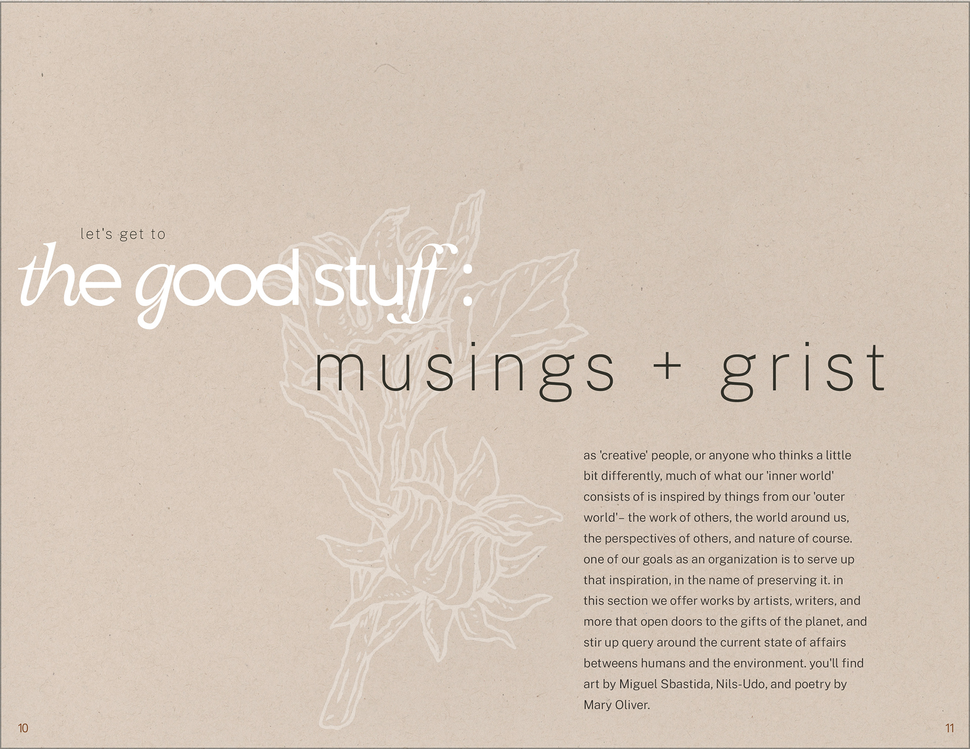 Above: "Musings + Grist", the beginning of the inspiration section of the zine
