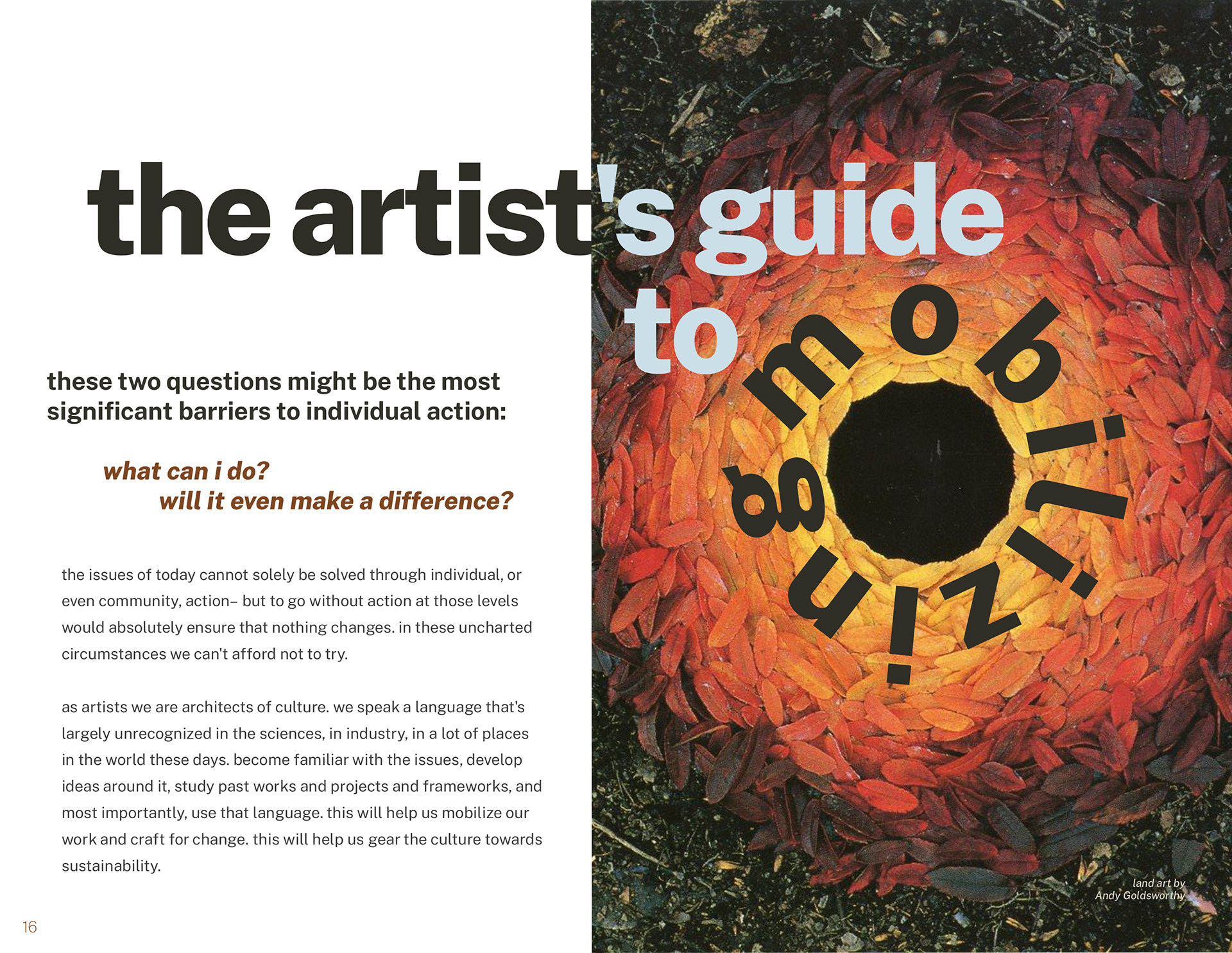 Below: pages 16 & 17, The Artist's Guide to Mobilizing