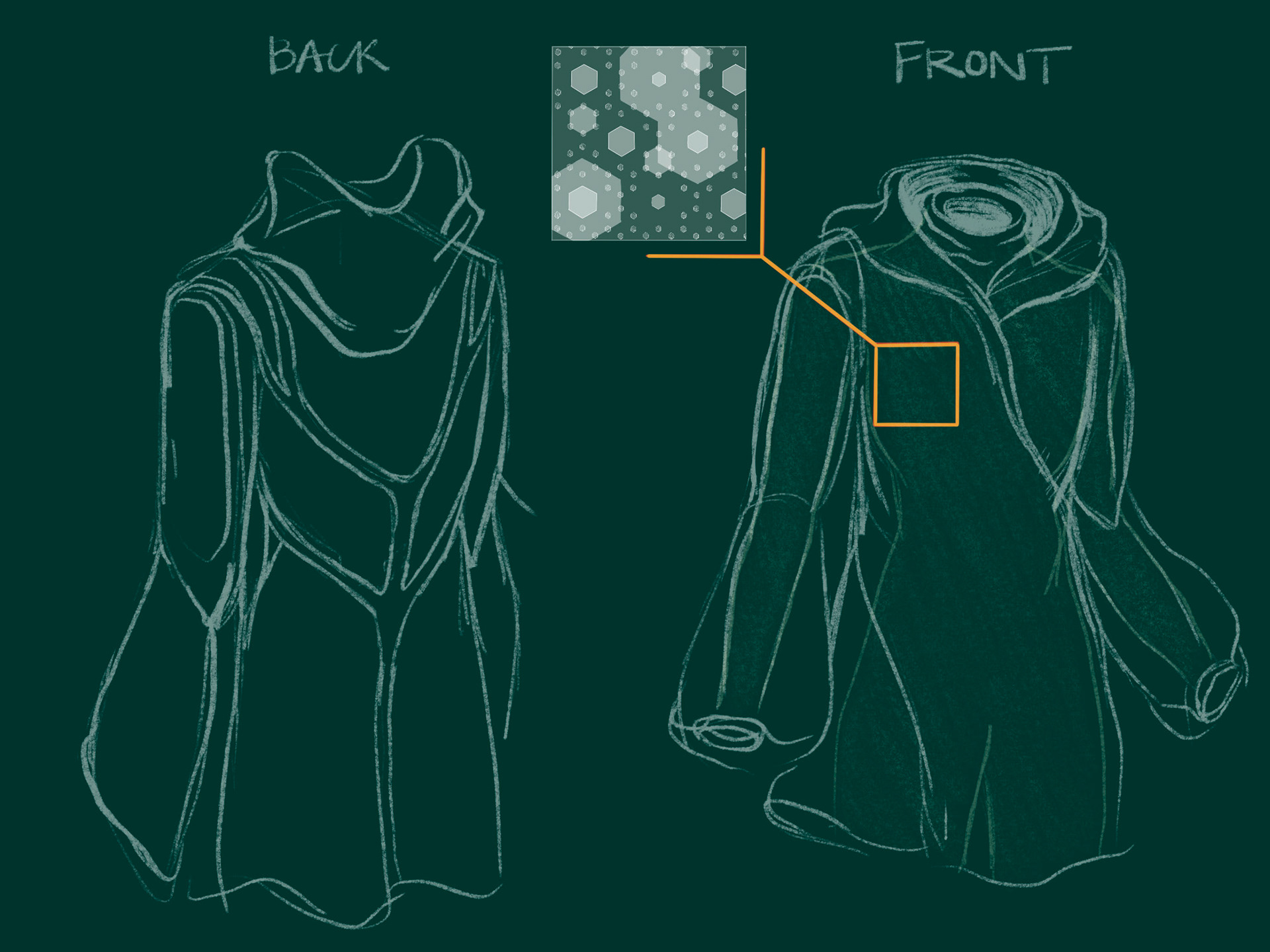 Final jacket design: gold call-out visualizes layered fabric structure (will be reworking this sketch)
