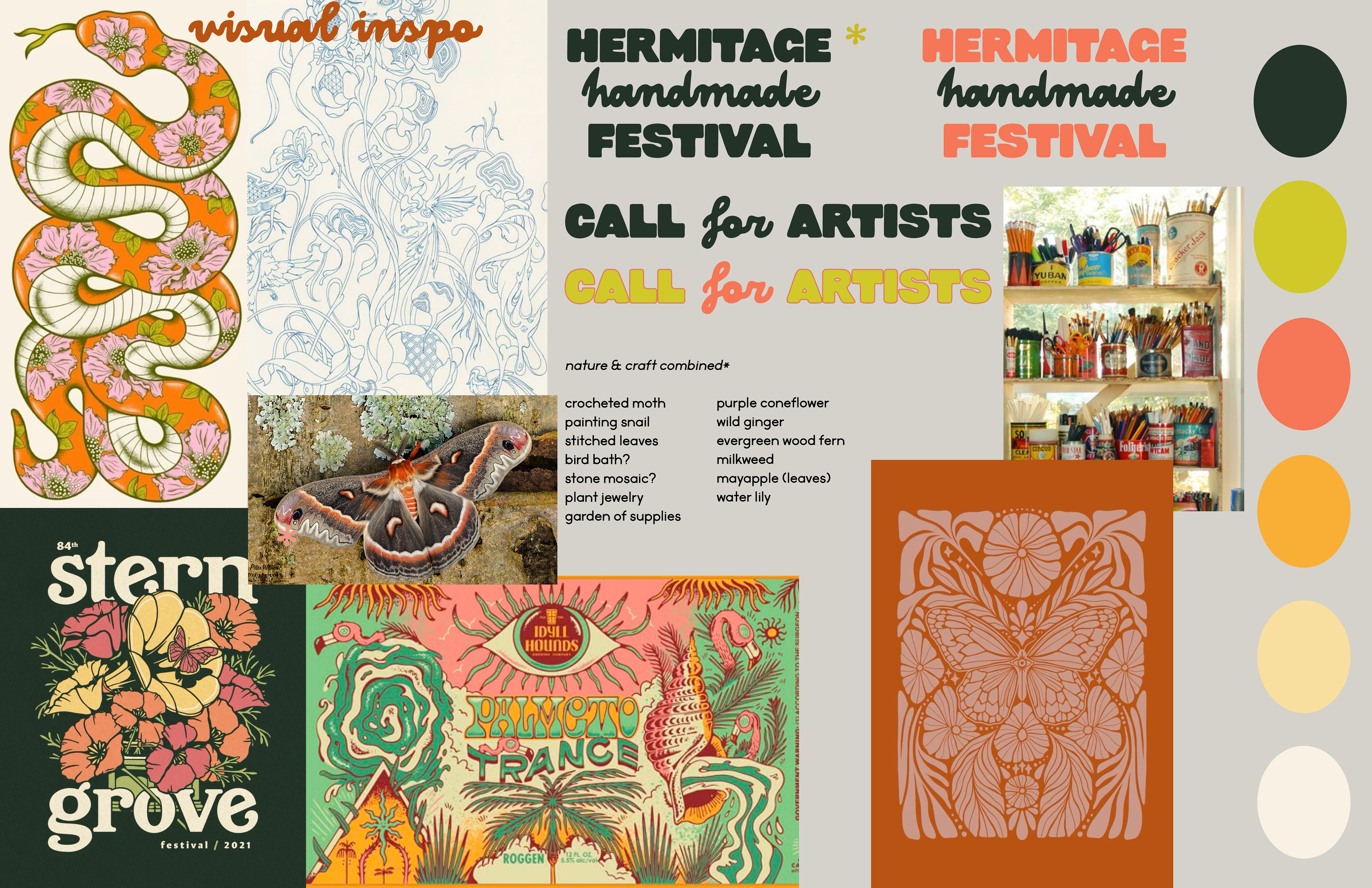 Original moodboard: visual reference, typeface, color palette, list of potential visual components